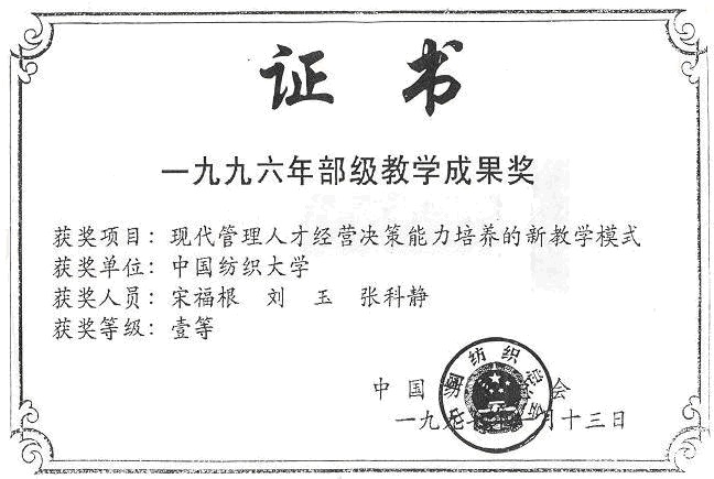 1996年纺织工业部教学成果一等奖