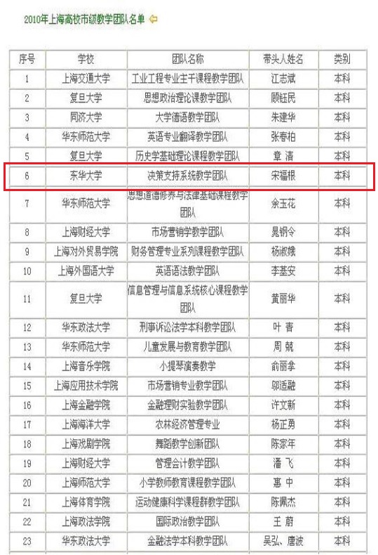 2010年获评上海市级教学团队