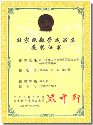 97'国家级教学成果二等奖 证书