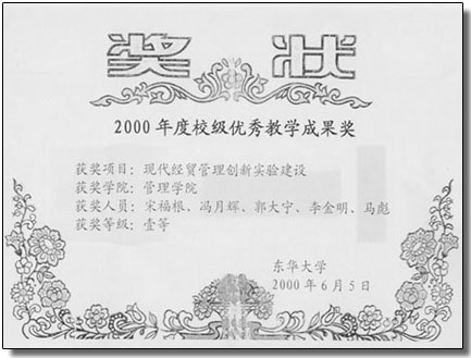 东华大学优秀教学成果一等奖 证书