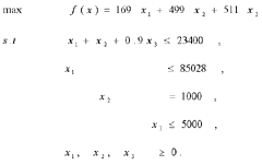 依据上述分析数据,生产优化DSS所建立的生产组合方案优化决策模型为: