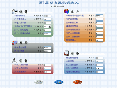 系统设置的模拟企业有足够的仓库可供材料存放,故不形成储存费用。但材料存放占用资金,会形成一定利息费用,而这些利息费用又与材料采购批量有关。同时,还应考虑大批量订货时所产生的机会成本,因此系统中的存储DSS在分析、比较不同订货批量所形成的总费用时,只对必须满足生产需求量的最小批量和更大一批的批量进行费用比较决策,总费用函数为: