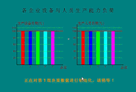 随后,屏幕将显示各企业设备与人员生产能力负荷直方图: