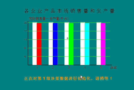 随后,屏幕将显示各企业产品市场销售量和生产量直方图: