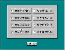 也可选择"直接进入至主系统",单击"确定"按钮后直接进入到系统主菜单。根据需要,以后随时可在主菜单中调整各周期决策仿真难易系数。