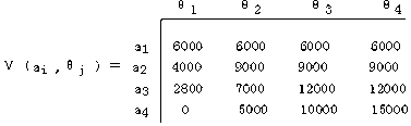 这表示r(ai,θj)是θj 列中最好的选择和同列中其它V(ai ,θj )值之间的差额,用r(ai ,θj )建立起的新矩阵称为后悔矩阵。对本例有: