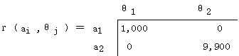 , 则损失比选取a1 增加9900元,也就是后悔值r(a2 ,θ2 )=9900元。当θ=θ1 时,则选取方案a2