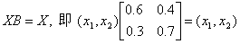 是稳定后的市场占有率,则 X 不随时间的推移而变化,即市场占有率处于动态平衡。这时,一步转移概率矩阵 B 也就对 X 不起作用,即有: