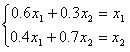 由于是两种牙膏的市场占有率,又由假定,市场上只有这两种牙膏,故有=1,联立上面的方程组,可以解得: