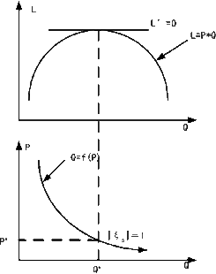 P* =Q/|───|,使销售收入L达到最大值。