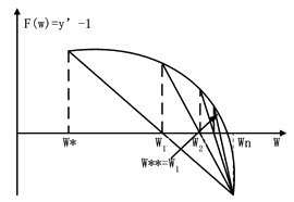 给定精度要求△F,当F(wi)<△F时,即令W** =Wi 为所要求的值,求解过程如图 3-5-11 所示。