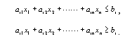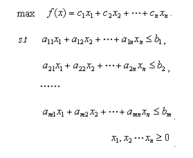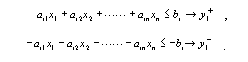 来代替的。对应于这两个(≤)约束的对偶变量分别设为yi+(≥0)和yi-(≥0)后,在对偶问题目标函数中的表示形式为bi(yi+-yi-),而在对偶问题约束条件中的表示形式为aij(yi+-yi-)(j=1、2、n)。再令yi=yi+-yi-,则yi可正可负,成为无符号约束变量。