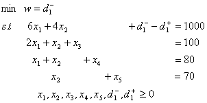 在本例中,引进优先等级因子,形成等级目标规划后的目标函数改写为:
