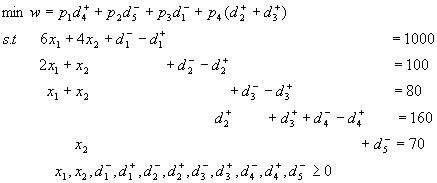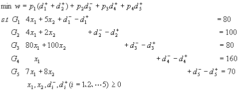 对含有多个变量的等级目标规划模型,要用单纯形法来求解,求解原理与图解法相同。