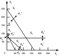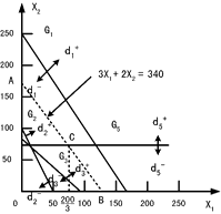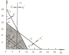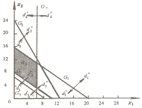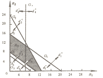 [例4-3-4]用图解法解在例4-3-3中引进优先等级因子后的目标规划模型。
