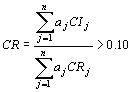 层次一致性检验也是从高到低逐层进行的。如果B层次某些因素对于Aj单排序的一致性指标为CIj ,相应的平均随机一致性指标为CRj, 则当B层次总排序随机一致性比率:
