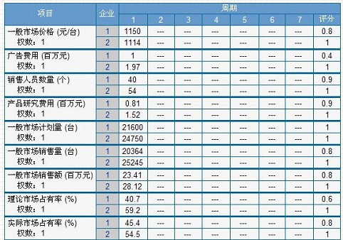 由表1生产经营决策评价总表中的理论市场占有率和实际市场占有率项目数据可知,E型产品实际市场占有率54.5%,低于理论市场占有率59.2%,这说明企业销售出现了较大的销售损失。所以,在企业生产能力不变的情况下,应进一步调整营销决策方案:或是再度提高产品销售价格,或是降低非价格促销手段运用费用投入,以提高单位产品销售利润,或是降低经营成本。