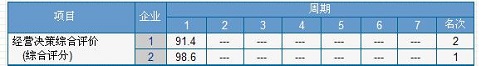 少到150万元,销售人员聘用减少到50名,其它产品改进费用投入减少到了50万元,中期贷款减少到了1450万元等。在某些竞赛环境设置中,如当决策仿真参加者已经能较好地掌握了本系统的决策仿真原理、过程和方法时,主持人会关闭预算功能,此时,可按同样原理由决策仿真参加者自行进行决策方案调整,以促使参加者自主决策,提高决策水平。将调整好的方案输入决策表单,即可得最终的第一周期企业经营决策调整方案如下: