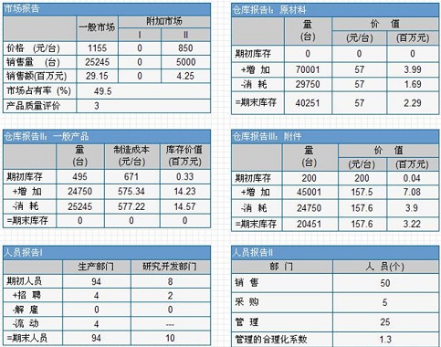 在与计算机进行竞争计算后,竞争计算后的部分主要企业经营报表报告如下:
