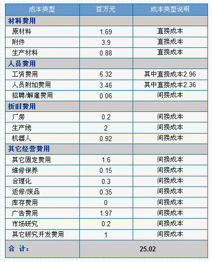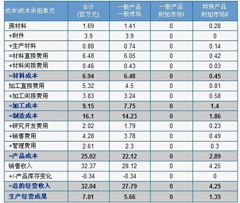 表2 决策方案预算产品成本类型核算报告