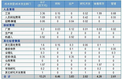表1 决策方案预算市场生产数据报告
