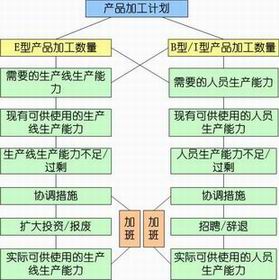 根据市场形势变化及销售计划,企业应确定产品的加工计划(该计划由E型、B型和I型产品加工计划组成),并配备必要的设备生产能力和人员生产能力。如果设备生产能力和人员生产能力无法满足生产需要或它们的配备是不经济的话,企业就必须及时地进行调整,以使它们和生产需要相适应。设系统中各模拟企业的生产是在已运行了四年的四条自动生产线上进行的。