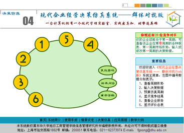 无论何种决策仿真系统版本,登录工作站系统后即可进入到主菜单页面,遵循主菜单页面椭圆环中的编号顺序 ,循序渐进,即可完成一个经营周期的决策仿真过程。主菜单页面如图1所示: